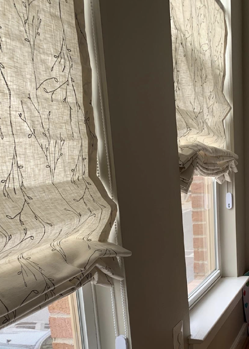 Banding can be added to any Roman Shade as can valances. Here are some examples: